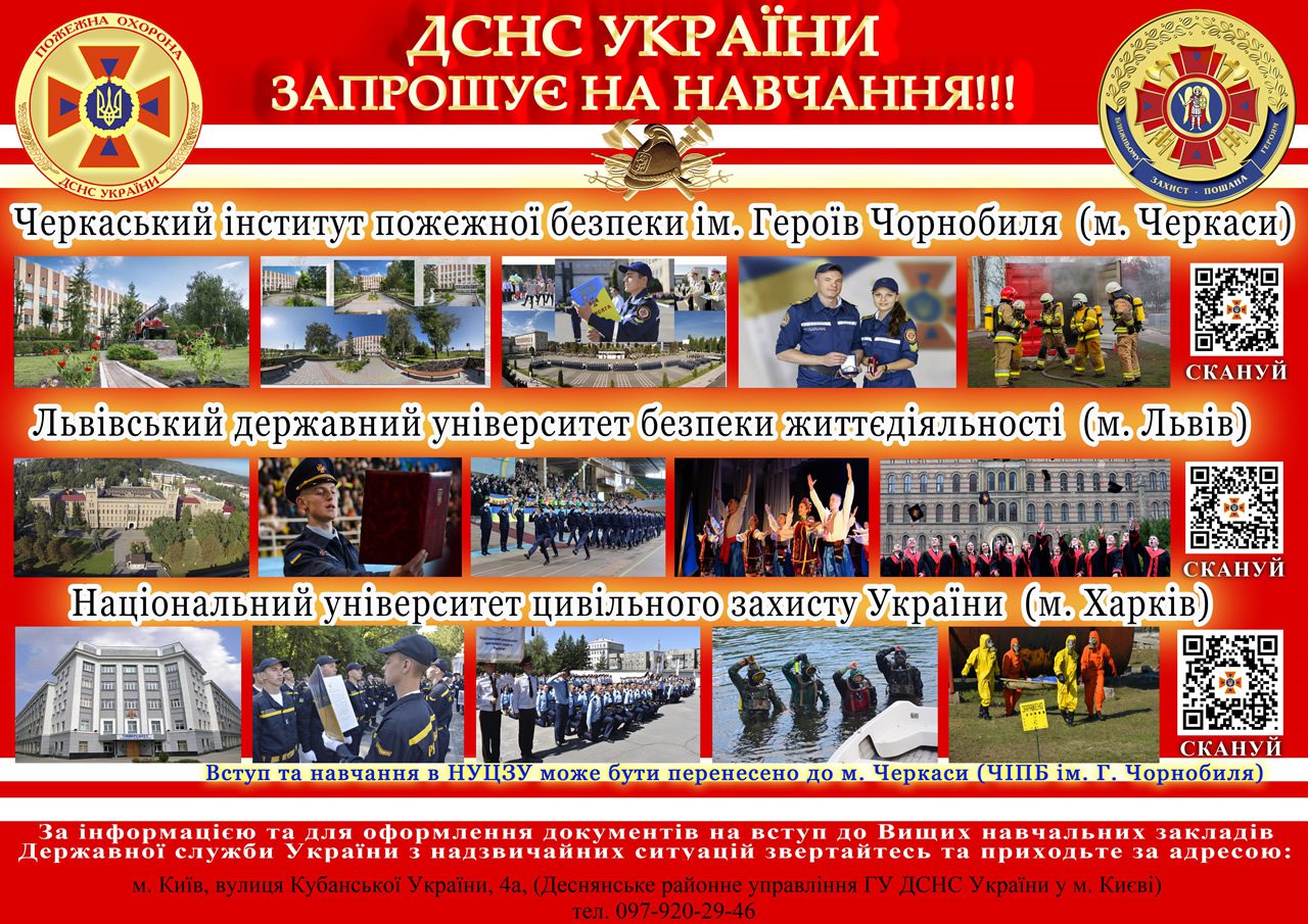 Запрошуємо випускників на навчання до закладів вищої освіти, що належать до сфери управління ДСНС